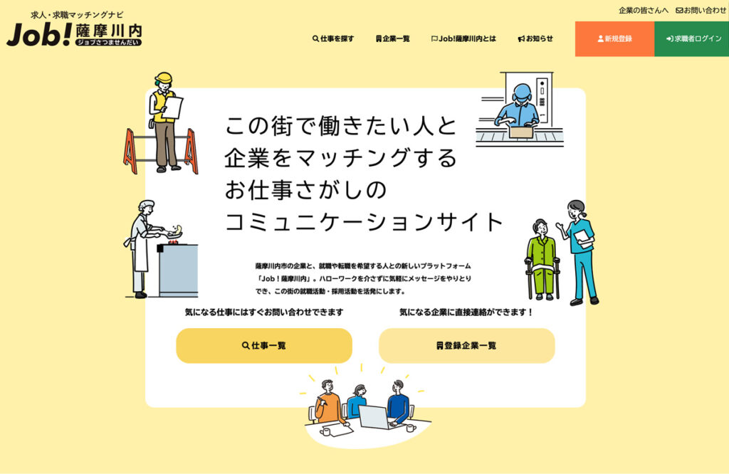 当サイトでは、薩摩川内市内で仕事を探している求職者と求人企業がハローワーク経由で応募に至る前のコミュニケーションを補助することを目的にしています。