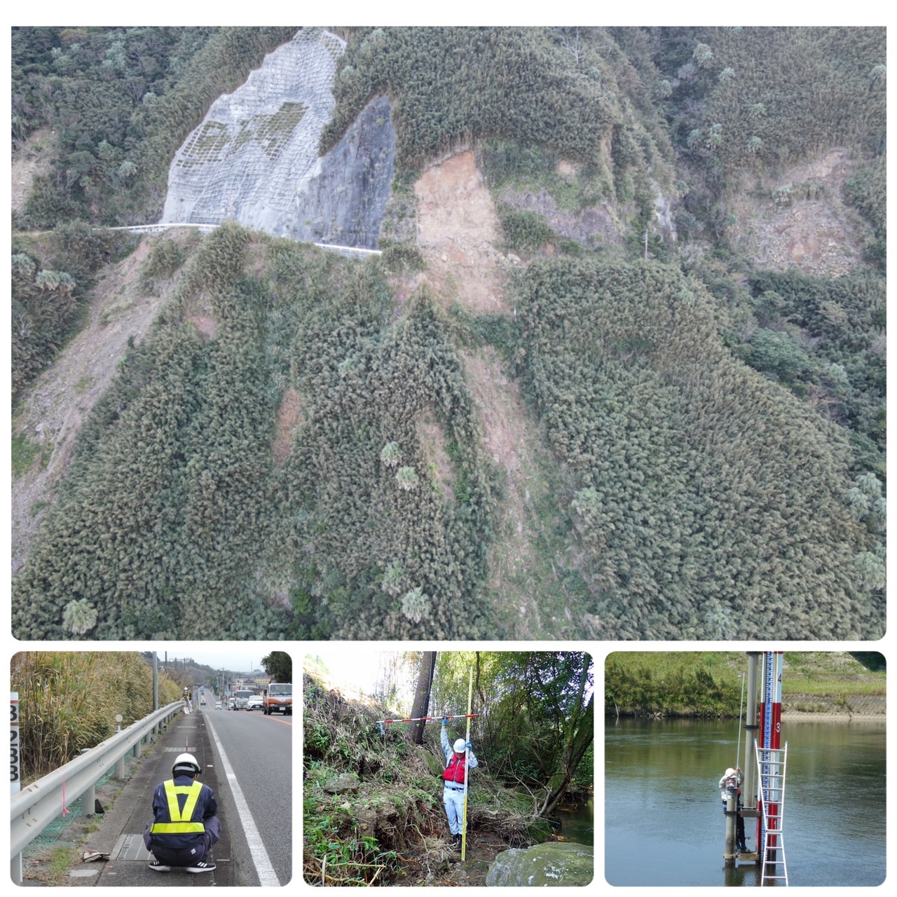 国土交通省・県・市町村から仕事をいただき、道路・河川・砂防などの測量や調査設計を行っています。