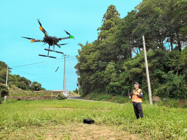 昨年導入したドローンSKY-Mapper MarkⅡです。UAVにレーザスキャナを搭載し、低空飛行で計測することで広範囲をより高精度・高密度の三次元点群データを取得することが可能です。